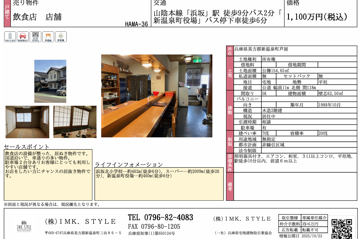 <店舗兼住宅>新温泉町浜坂